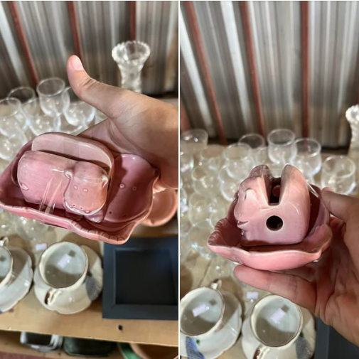 You know that feeling like when you’re rummaging through a thrift store shelf and something’s sort of staring back at you as if to say, “I had an occupation… You, uh. You just forgot what it was”? That’s exactly what happens with a small ceramic hippo dish like the one in the picture. It’s adorable, it’s weirdly specific, and it looks like something that would have fit perfectly in a 1950s bathroom alongside a glass tumbler and unmelting bar of  soap.