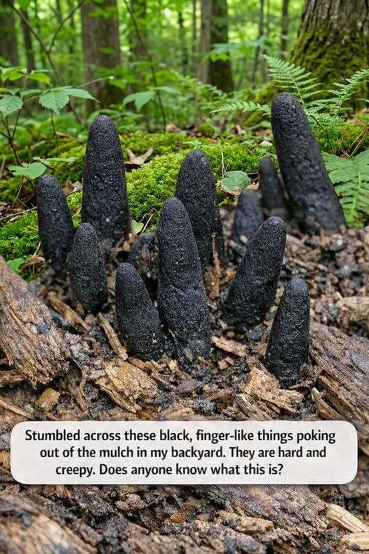 Finding unusual growths in your backyard can be surprising, especially when dark, finger-shaped forms suddenly appear in mulch or soil. While they may look mysterious at first glance, these formations are often a common woodland fungus known as Dead Man’s Fingers (Xylaria polymorpha). Despite the dramatic name and unusual appearance, this fungus is generally harmless. In fact, it plays an important role in nature by helping break down decaying wood and returning nutrients to the soil. What may seem alarming at first is actually part of a healthy ecosystem quietly at work beneath your feet.