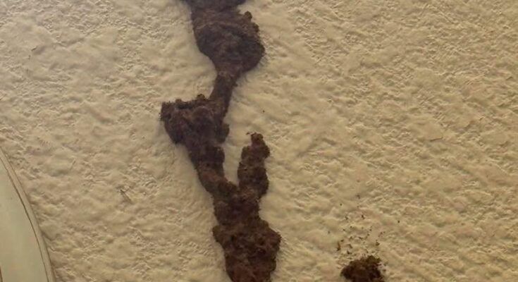 Termites are often described as “silent destroyers,” and for good reason. These tiny insects can cause extensive, costly damage to a home without the homeowner even knowing they’re there. A recent post on Reddit highlighted an unsettling experience when a small dirt tunnel appeared on the wall inside someone’s home—right above a clock. What started as a seemingly harmless patch of soil grew into a thick, alarming trail within 18 days. Upon further inspection, the answer became clear: termite mud tubes.
