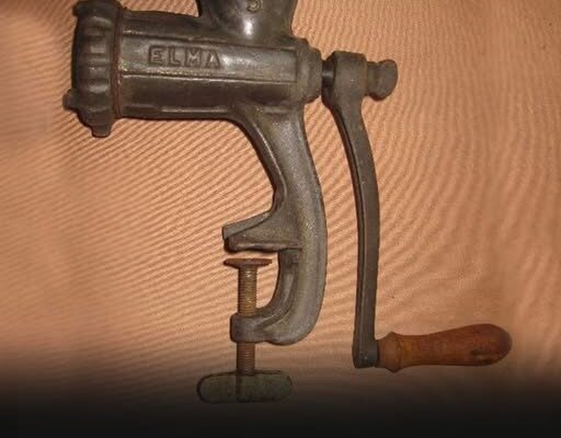 It was actually a manual meat grinder, a kitchen tool that was once extremely common in household kitchens.